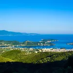 Villa Gem Moni Evaggelistrias dysponuje tarasem z widokiem na górę, 7 min jazdy od lotniska Wyspa Skiathos. Willa oferuje gościom relaksujące doświadczenie z jacuzzi.